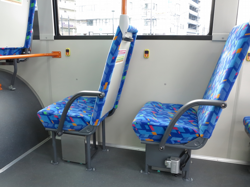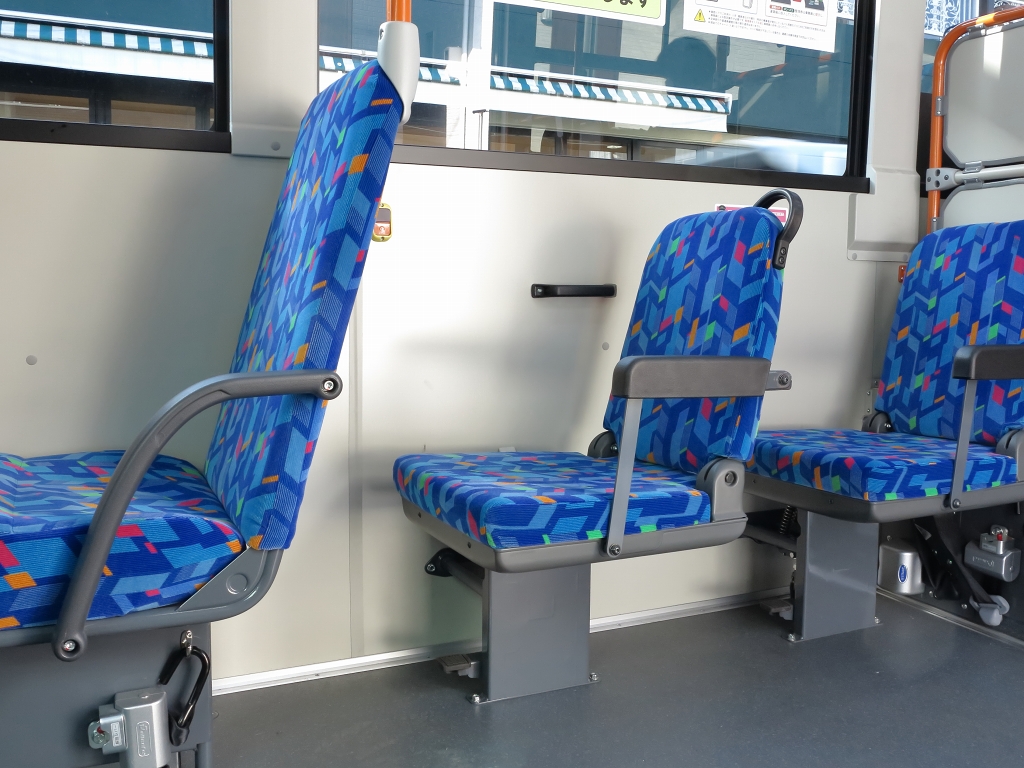 型式:2KG-KR290J5 シートモケット:青色(メーカー標準・オーシャンブルー) 解説:シートレイアウトが変更され、ノンステップエリアの座席が全て一人掛けの「都市型」が採用されました。